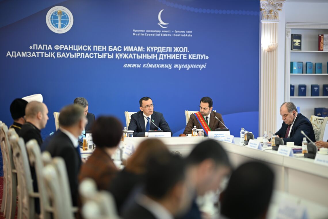 В Астане состоялась презентация перевода книги генерального секретаря Мусульманского совета старейшин Мухаммеда Абдельсалама. Издание, выпущенное на казахском языке, называется «Папа Римский и Верховный имам: Тернистый путь и свидетельствует о рождении человеческого братства».