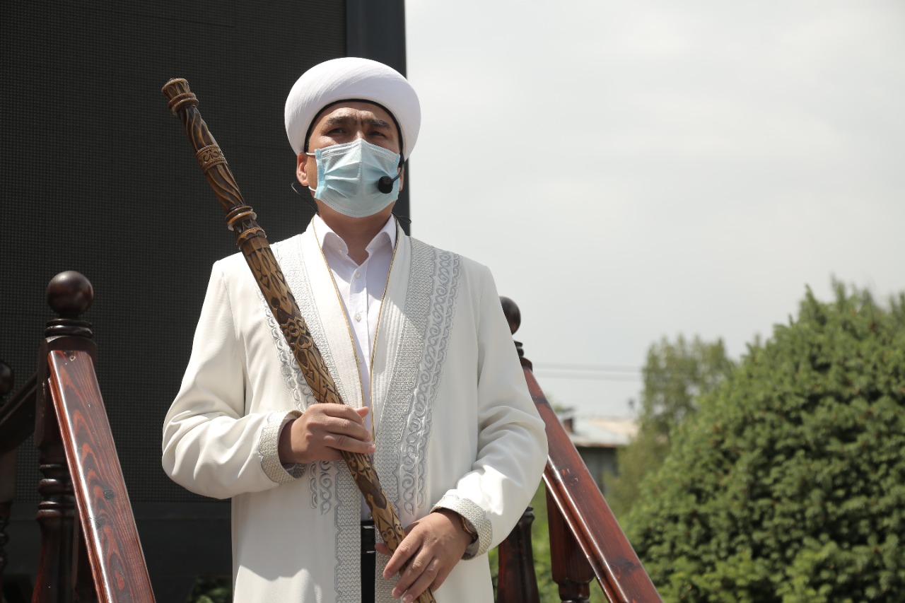 Наиб муфтий Ершат Онгаров зачитал прихожанам приказ Верховного муфтия и передал самые добрые пожелания Наурызбая кажы Таганулы бывшему главному имаму города Алматы Еркинбеку Шокаю.