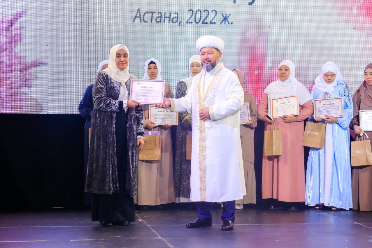 Сегодня в Астане председатель Духовного управления мусульман Казахстана Наурызбай кажы Таганулы принял участие на II Республиканском конкурсе мод женщин-мусульманок «Әсем киім – әйел ажары» и наградил региональных представительниц сектора женщин при муфтияте благодарственными письмами и добрыми пожеланиями.