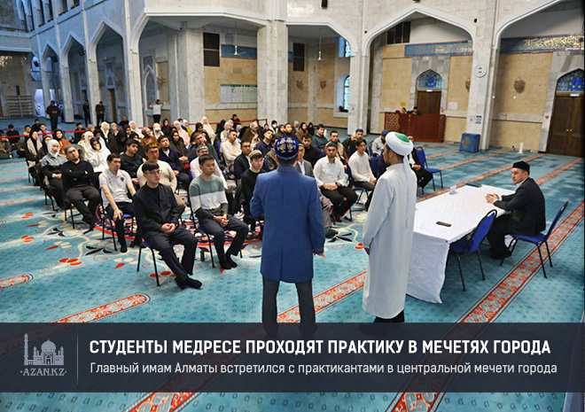 В ходе мероприятия в Центральной мечети Алматы главный имам обсудил со студентами процесс практики и выступил с наставлением об ответственности служения в сфере религии. Также он поручил глубоко усвоить этику религиозного служащего, которая требует, сохраняя ценности ислама, служить людям, проявлять корректность при проведении религиозных обрядов и поддерживать общественное согласие.