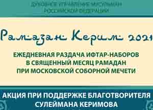 Проект «Рамадан Керим 2021» проводился в 2021 году во второй раз. Он осуществлен по благословению духовного лидера российских мусульман муфтия шейха Равиля Гайнутдина на средства благотворителя Сулеймана Керимова.