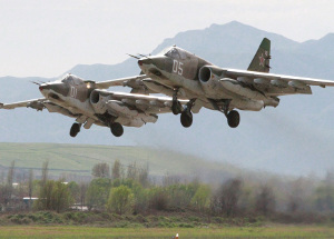 Четыре штурмовика Су-25СМ совершили перелет с авиабазы Кант, дислоцированной в Кыргызской Республике, столько же бомбардировщиков Су-24М переброшены с южноуральской авиабазы Шагол.