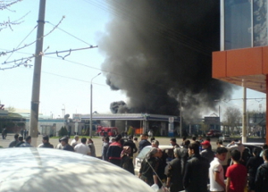 По информации агентства, среди прохожих и людей, находившихся на автозаправке есть пострадавшие, возможны жертвы. На расстоянии около 1 километра от места происшествия дороги были перекрыты. На место ЧП направляются кареты скорой помощи и машины милиции.