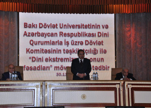 Затем ректор, академик Абель Магеррамов, открывая мероприятие, сказал, что в рамках объявленного президентом Ильхамом Алиевым 2016 года «Годом мультикультурализма»", в нашей стране делается многое, в том числе в плане усиления просветительства среди молодежи. Отметив, что мероприятие было организовано как раз для этой цели, ректора сказал, что в мире немало сил, которые используют ислам и другие религии в своих политических целях, а радикальные группы - в геополитических интересах.
