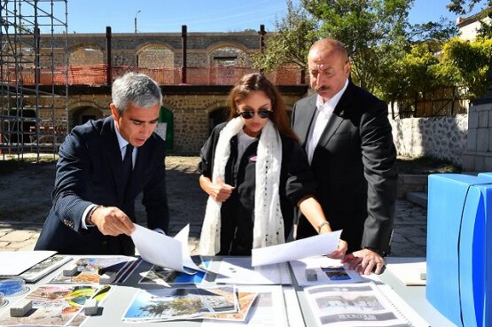 Глава Азербайджана Ильхам Алиев и первый вице-президент Мехрибан Алиева 27 сентября посетили жемчужину Азербайджана — город Шушу. Они посетили расположенную там мечеть Юхары Говхар Ага, ознакомились с проводимыми работами по реконструкции и восстановлению. Об этом сообщает пресс-служба главы Азербайджана.