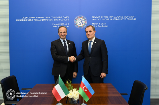 Министр иностранных дел Азербайджана Джейхун Байрамов провёл встречу с главой МИД Государства Кувейт шейхом Салемом Абдуллой аль-Джабером Аль-Сабахом, находящимся с визитом в Азербайджане. Встреча прошла в рамках саммита контактной группы по борьбе с COVID-19 Движения неприсоединения (ДН). Об этом сообщает пресс-служба азербайджанского МИД.