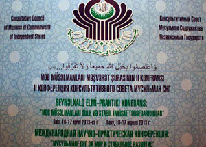 16-17 апреля 2013 года в столице Азербайджана Баку прошла научная конференция, организованная Консультативном Советом мусульман СНГ. Представляем вниманию выжимки из выступления Аллахшукюра Пашазаде. Поприветствовав собравшихся, А. Паша-заде сказал, что молится Аллаху «о благословении всех наших усилий, направленных на безопасность, благосостояние и нравственную твердость наших народов». Основной целью конференции он определил в использовании «имеющихся духовных возможностей» для решения задач, представляющих общий интерес для «того уникального духовного пространства, каким является СНГ».
