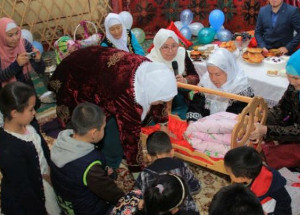 В рамках пропаганды традиционного мазхаба Абу Ханифа в областной мечети «Имангали» состоялось театрализованное представление «Крепкая семья – основа государства», в ходе которого были продемонстрированы казахские народные обычаи, передает pricom.kz. Стоит отметить, что все представление состоялось в импровизированной юрте, раскинутой в зале мечети, и было подготовлено жамагатом, причем, главные героями сценок стали молодые пары, только что связавшие себя узами брака в мечети, новорожденный внук горожанки, которая изучает арабский язык, и так далее. Если по порядку, то гость из Турции, теолог Хусейн Кая прочитал суры из Корана, а главный имам областной мечети «Имангали», представитель ДУМК по Атырауской области Батыржан кажи Берденулы отметил необходимость соблюдения казахских народных традиций, на коих и строятся взаимоотношения в казахских семьях. «У всех народов во все времена придавалось большое значение воспитанию детей. В ходе развития ислама формировались и традиции и обряды, которые отличали казахский народ от иных народов. Сохранившиеся с древних веков, они стали сокровищницей народа и очень жаль, что в наступившие времена отдельные молодые люди отрицают их соблюдение», – подчеркнул имам. Далее главный имам мечети провел обряд неке ?ию – бракосочетание молодой пары. После создания семьи вполне логично и появление младенцев. Как только молодая невестка забеременела, проводится на радостях той – құрсақшашу, целью которого является объявление всей родне о радостной вести – ожидании младенца и по этому поводу оказание почестей молодой снохе, повсеместного к ней внимания, чтобы младенец в утробе развивался нормально. Далее наступают времена радостного ожидания и гадания, кто же родится – девочка или мальчик? После рождения ребенка проводится обряд нарекания ребенка именем. Главный имам мечети Батыржан Берденулы провел обряд наречения именем дочери горожанина Мурата. Далее Турсын апа провела обряд бесикке салу. Ребенок подрастает и пытается самостоятельно ходить, был продемонстрирован обряд тұсаукесер – разрезание пут ребенку, чтобы его жизненный путь был светлым. Режиссером представления выступила наставница мечети Айжаркын Тузелова. URL: |