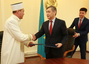 15 февраля 2017 года в здании Дома Министерств состоялось подписание Соглашения о сотрудничестве между Министерством по делам религий и гражданского общества Республики Казахстан и Духовным управлением мусульман Казахстана. 15 февраля 2017 года в здании Дома Министерств состоялось подписание Соглашения о сотрудничестве между Министерством по делам религий и гражданского общества Республики Казахстан и Духовным управлением мусульман Казахстана. В ходе выступления министр Нурлан Ермекбаев отметил, что Духовное управление мусульман Казахстана способствует укреплению стабильности в религиозной сфере посредством проведения просветительской работы, предостережения верующих от идей деструктивных религиозных течений, а также добавил: «...мы будем тесно сотрудничать с Духовным управлением в мероприятиях, направленных на усиление эффективности государственной политики в сфере религий. Именно это лежит в основе подписания соглашения». Министр обозначил нацеленность министерства на организацию с Муфтиятом совместной работы по проведению мероприятий, направленных на профилактику распространения религиозного экстремизма, осуществление дополнительных шагов для духовно-нравственного воспитания подрастающего поколения и привлечения для этого религиозных объединений в рамках мероприятий по обеспечению безопасности общества, освещенных в Послании Главы государства народу Казахстана в этом году. Верховный муфтий в своем выступлении также отметил, что «Соглашение ориентирует муфтият на налаживание тесного взаимодействия с государством по актуальным вопросам религиозной сферы. Данное соглашение предоставляет возможность эффективно проводить информационно-разъяснительную работу, направленную на профилактику религиозного экстремизма и терроризма посредством культивации традиционных духовных ценностей среди разных социальных групп, в том числе среди молодежи. Совместная с уполномоченным органом в сфере религий работа является основой формирования у молодежи духовных ценностей, соответствующих принципам светского государства». Мероприятие завершилось подписанием сторонами меморандума о сотрудничестве. Источник: http://e-islam.kz/ru/songy-janalyktar/item/12556-mdrgo-i-dumk-podpisali-soglashenie-o-sotrudnichestve URL: |