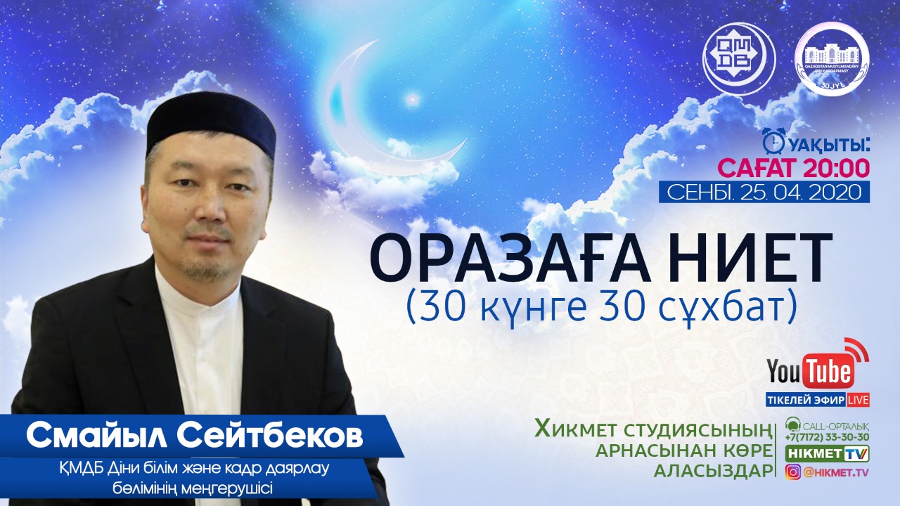 Телестудия «Хикмет ТВ» при ДУМК начала проводить онлайн-беседы «30 бесед на 30 дней» с участием известных имамов и устазов страны каждый день Рамадана.