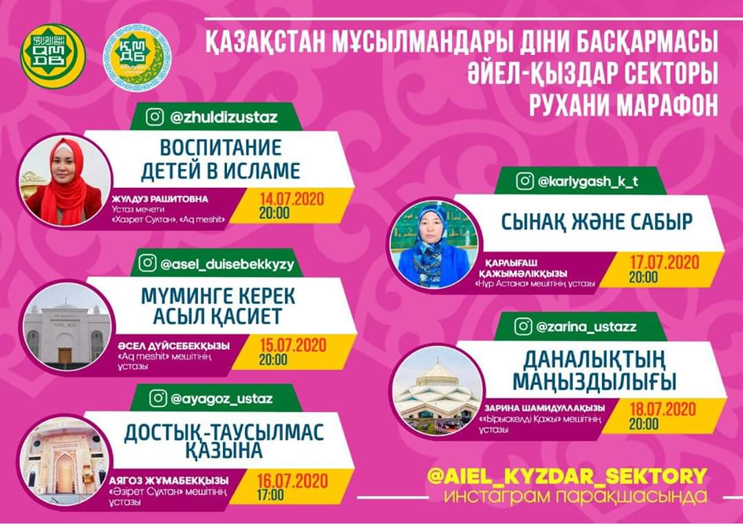 Начался «Духовный марафон», организованный сектором женщин и девушек при Духовном управлении мусульман Казахстана и устазами города Нур-Султан, для всех мусульманок страны.