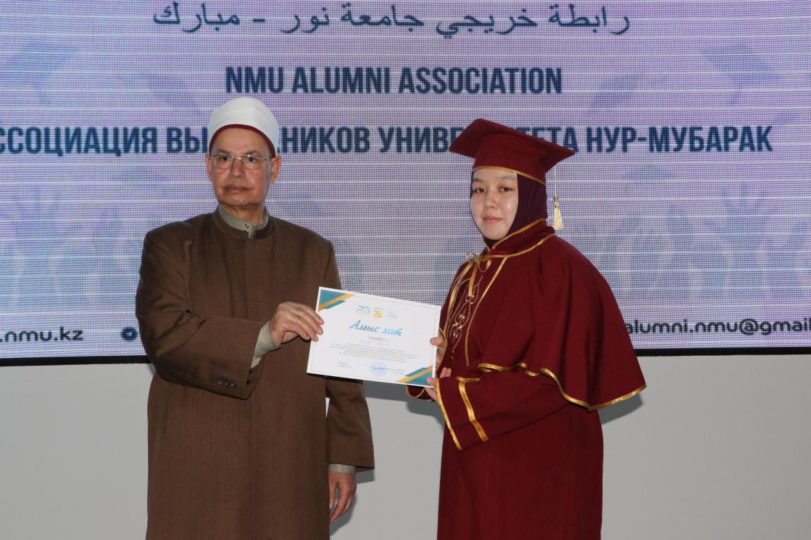 Последнее из студенческих собраний, где прозвучали Священный Коран и гимны Казахстана и Египта, было посвящено выпускникам этого года университета Нур Мубарак