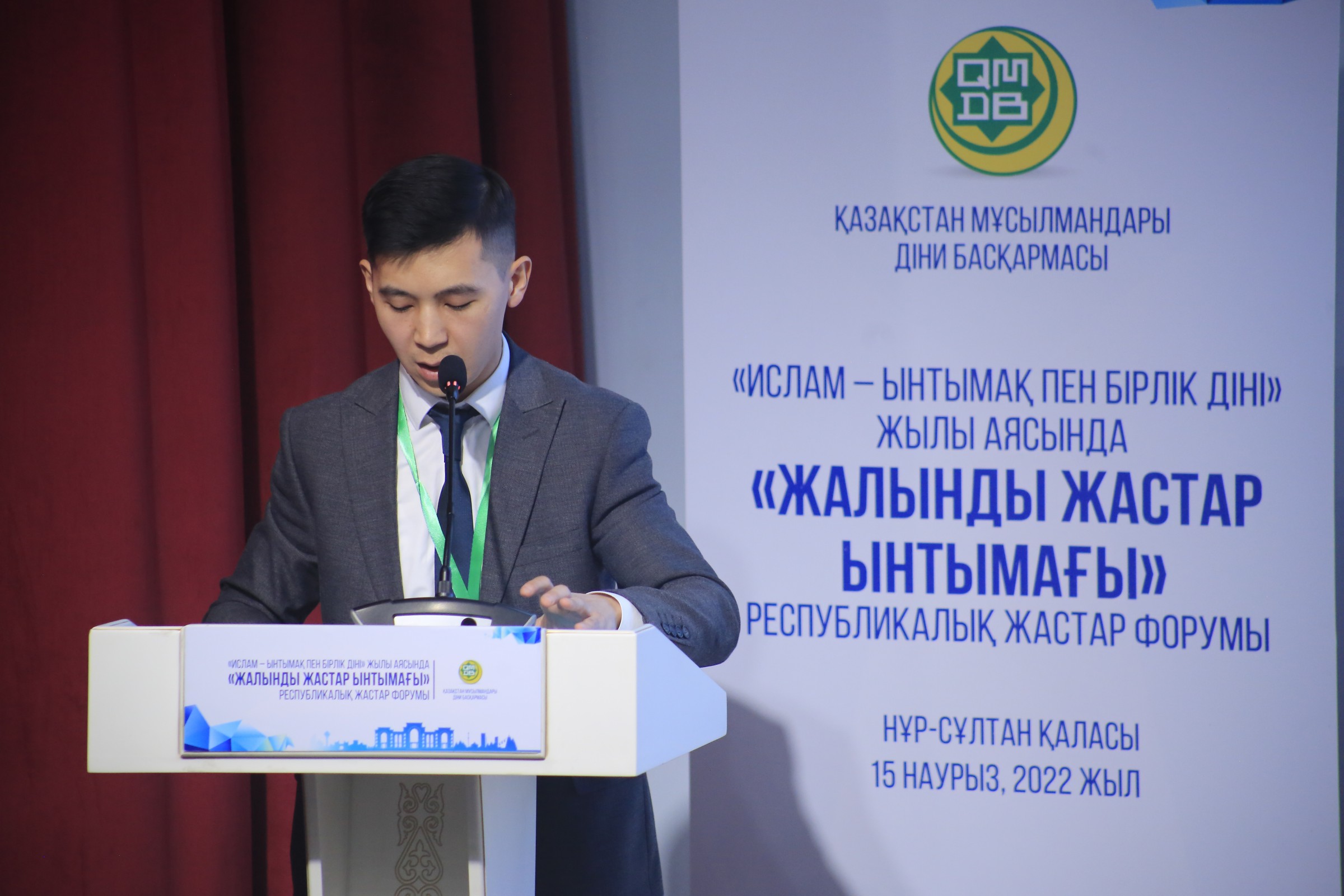 «Мы, участники Республиканского молодежного форума «Жалынды жастар ынтымағы», поддерживаем инициативу Духовного управления мусульман Казахстана об объявлении 2022 года Годом «Ислам – религия единства и солидарности», а также призываем представителей молодого поколения получать качественное и разностороннее образование, служить во благо своего государства и народа, сторонится и остерегаться идеологии деструктивных религиозных течений.