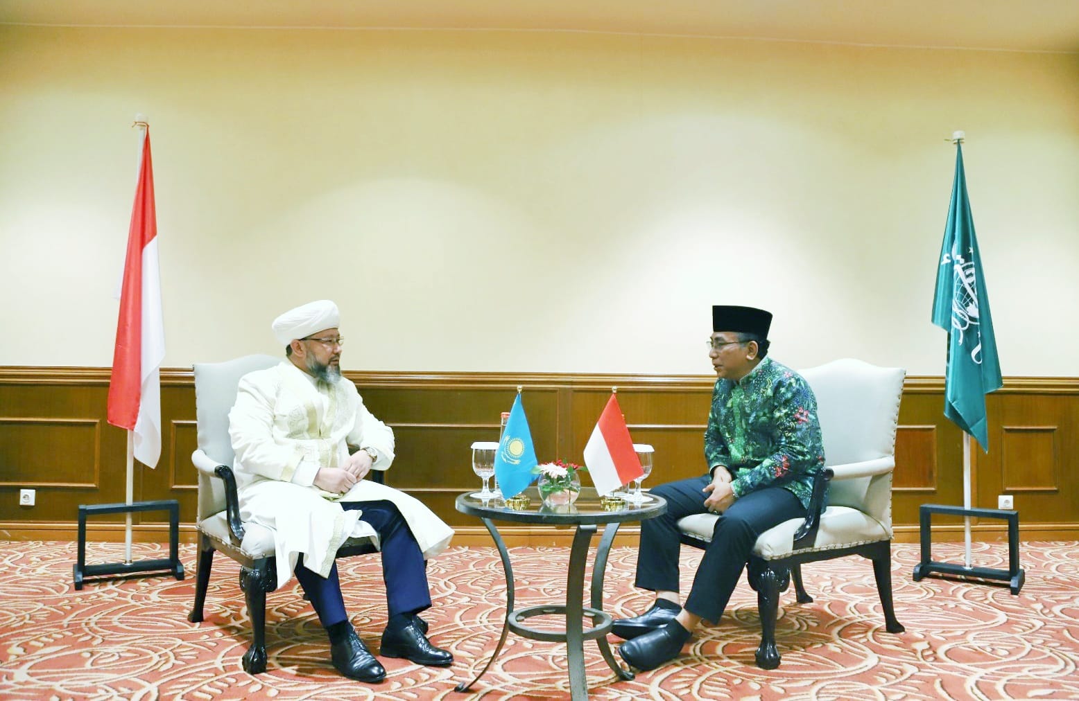 В свою очередь, Верховный муфтий Наурызбай кажы Таганулы поздравил со 100-летием организации Нахдлатул Улама и передал добрые пожелания. В то же время были обсуждены важные вопросы встречи, состоявшейся в Астане в прошлом году. Кроме того, было отмечено, что важно обмениваться опытом принятия общих для современного мусульманского мира фетв, оказывать поддержку друг другу в таких важных религиозных вопросах, как образование и халяльные стандарты.