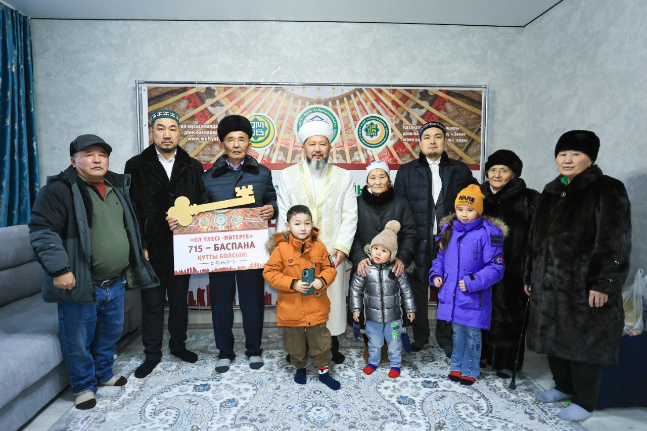 Сураухан ата и Айнеш апа, потерявшие сына и невестку два года назад в результате взрыва газового баллона и гибели трех человек, обратились к Верховному муфтию с просьбой помочь с жильем оставшимся детям. Для семьи, погибшей в пожаре, было собрано на специальное отопление, а с помощью спонсоров была предоставлена новая квартира. Разделивший радость председатель ДУМК Наурызбай кажы Таганулы поздравил их с новым жильем и выразил добрые пожелания.