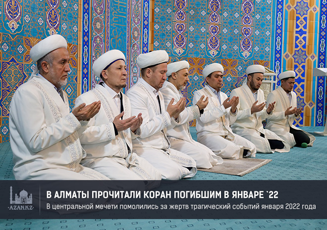 В центральной мечети г. Алматы с участием наиб муфтия Кенжеали Мырзабаева и главного имама Толеби Оспана был прочитан Коран, посвященный жертвам трагических событий, произошедших в январе 2022 года.