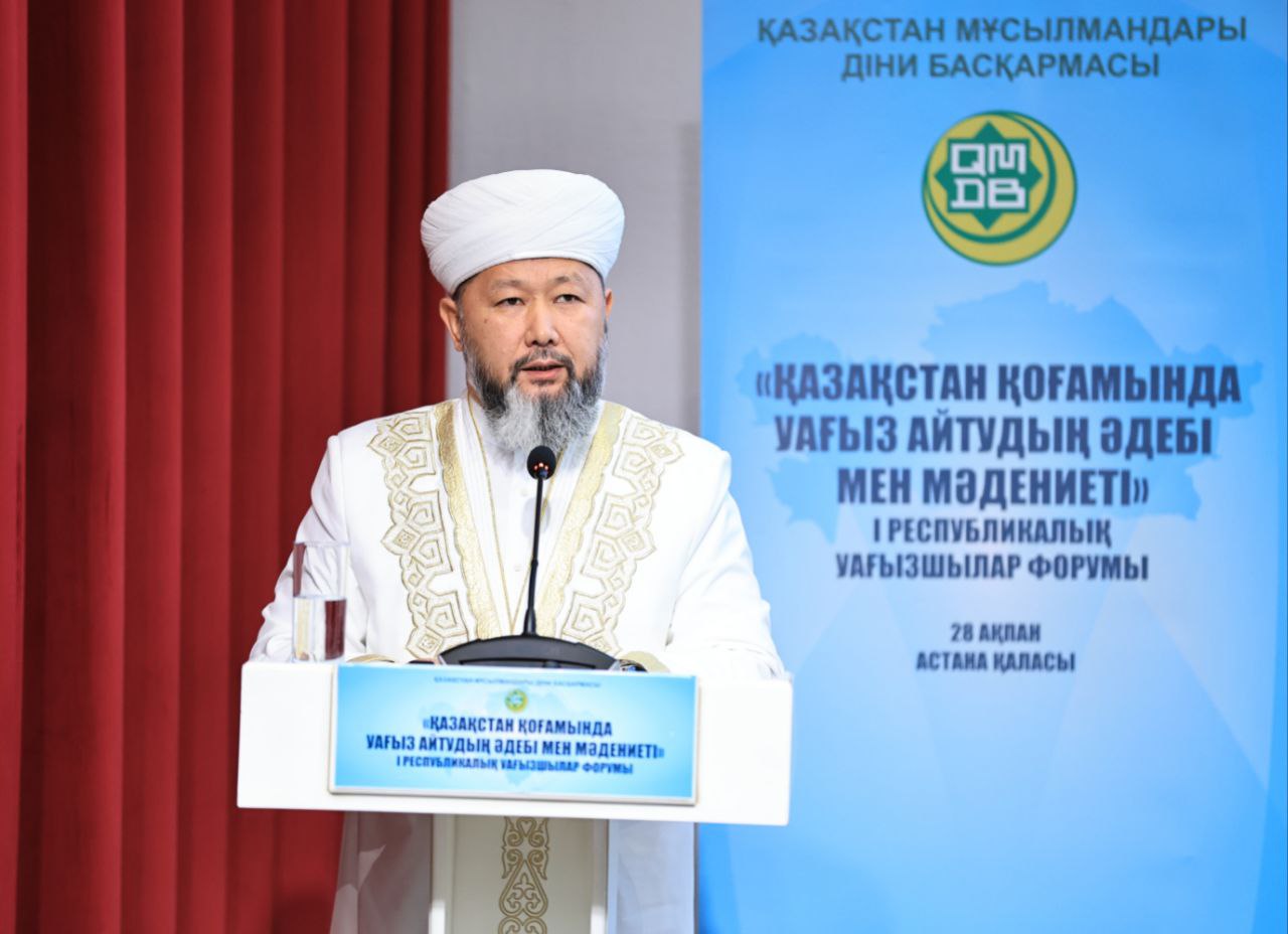 Верховный муфтий Наурызбай кажы Таганулы выступил с докладом на I Республиканском форуме проповедников на тему «Этикет и культура проповеди в казахском обществе», организованном сегодня Духовным управлением мусульман Казахстана.