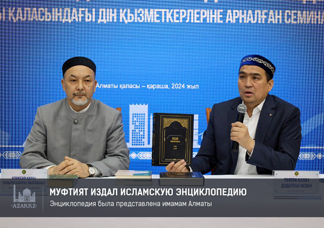 Исламская энциклопедия, выпущенная издательством «Муфтият» была представлена имамам города. В церемонии презентации приняли участие наиб муфтий Кенжеали Мырзабаев и главный имам Алматы Толеби Оспан.