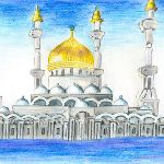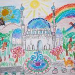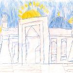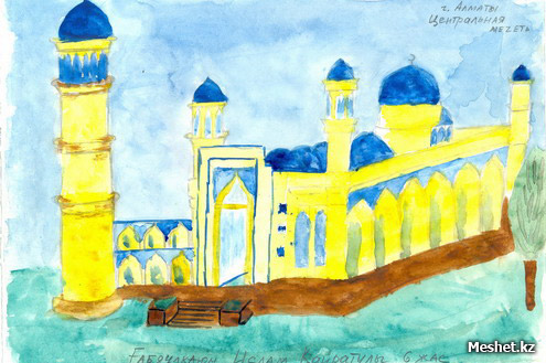 Некоторым может показаться, что в данной картине нет ничего примечательного, но с точки зрения изобразительного искусства, данная картина заслуживает отдельного внимания, так как возраст художника, который ее выполнял - 6 лет. Для 6-ти летнего ребенка данная работа считается уникальной, особенно учитывая тот факт, что ребенок не имеет профессиональных навыков в изобразительном искусстве. На картине изображена Центральная мечеть г.Алматы, формат рисунка А4.