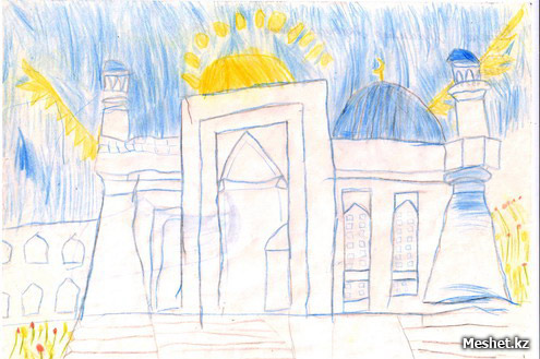 Данная работа выполнена воспитанником Аккольского детского дома. Рисунок не требует каких-либо комментариев, работа выполнена на должном уровне. На рисунке изображена Центральная мечеть г.Астана - "Нур-Астана", формат рисунка А4. Фотовыставка:URL: |