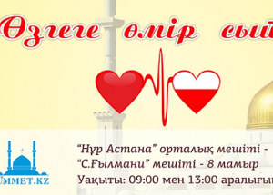Всем нам известна большая потребность в донорской крови. В связи с чем 24 апреля т.г. мы приглашаем принять участие в акции по сдаче крови «Подари жизнь», который пройдет в мечети «Нур Астана», в 09:00-13:00 часов.