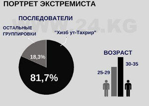 Кыргызстан южный и радикальный В Кыргызстане религиозный экстремизм сконцентрирован в основном в южных регионах. Здесь традиционно сильно влияние ислама на людей. Оно не ослабло даже под влиянием атеистической пропаганды в годы СССР. В прошлом в Ферганской долине были широко распространены различные исламские течения и толки - хариджиты, мутазилиты, карматы, исмаилиты, различные суфийские секты, бабизм, бехаизм. Их влияние сказывается на регионе до сих пор. Специалисты отмечают, что в последнее время экстремистские организации активно распространяют свои идеи и на север Кыргызстана. Однако подавляющее количество преступлений, связанных с религиозным экстремизмом, регистрируется на юге. «Сегодня на юге республики работают политизированные и опасные религиозно-экстремистские организации - «Хизб ут-Тахрир», «Акрамийя». Присутствуют террористические организации такфиристско-джихадистского движения «Жайшуль Махди», «Джунд-уль-Халифат», «Ансаруллох», «Ат-Такфир Валь-Хиджра» и «Исламское государство». Около двух тысяч граждан КР являются приверженцами их экстремистских идей», - говорит начальник отдела 10-го Главного управления МВД КР Эрлан Бакиев.