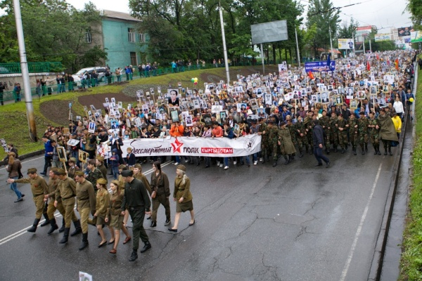 В прошлом году 9 мая в шествии по улицам столицы приняли участие более 60 тысяч человек, которые несли портреты фронтовиков, цветы, транспаранты и воздушные шары. Колонна демонстрантов растянулась на несколько километров, и когда ее головная часть заходила на площадь «Победы», арьергардная часть находилась в районе железнодорожного моста по улице Абдрахманова. Организаторы не исключают, что в этом году участников будет еще больше.