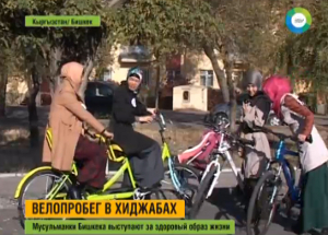 Мусульманки, живущие в Кыргызстане, впервые приняли участие в спортивном мероприятии. В стране считают, что женщины в хиджабах не должны заниматься спортом. Но на самом деле мусульманки не только на велосипедах катаются, но и активно занимаются в спортзалах.
