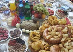 Праздничный дастархан таджиков и киргизов в Баткене и Исфаре
