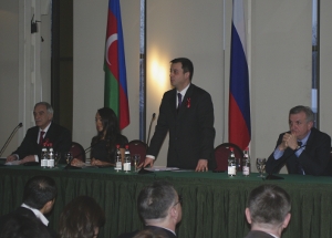 В прошедшую пятницу 25 февраля в Москве прошла конференция, посвященная Ходжалинской трагедии, которая была организована представительством Фонда Гейдара Алиева в России, Азербайджанской молодежной организацией России, Молодежным форумом ОИК и посольством Азербайджана в России. На мероприятии состоялось подписание международной петиции кампании, адресованной Конгрессу США, ООН, ПАСЕ и Европарламенту, с призывом признать ходжалинскую резню как "преступление против человечества и приложить усилия по привлечению виновников трагедии к ответственности". В конференции приняли участие более 500 гостей, среди которых представители российской интеллигенции, исламские деятели, представители научных и творческих кругов, азербайджанской диаспоры, СМИ, а также студенты московских вузов. На мероприятии спецпредставитель СМР по работе со странами СНГ Дамир Мухетдинов (крайний слева на фото) от имени председателя Совета муфтиев России передал письмо с выражением соболезнования азербайджанской диаспоре.