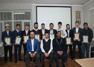 24 декабря, в стенах Московского исламского института прошёл конкурс «Лучший знаток Корана МИИ 2019». Отметим – этот студенческий конкурс проводится в МИИ ежегодно и всегда представляет собой «стремление опередить друг друга в благих делах», к чему призывает нас Благородный Коран». Ректор МИИ первый зампред ДУМ РФ профессор Санкт-Петербургского государственного университета Дамир Мухетдинов, беседуя с каждым студентом, говорит: «С самого первого дня в МИИ – вы со всей ответственностью должны осознавать, что вы будущие имамы, призванные нести свет нашей веры прихожанам…». Именно поэтому участвуют в этом конкурсе студенты всех курсов с первого по четвертый. Мероприятие традиционно началось с чтения Благородного Корана. Коран читал преподаватель Международного университета Аль-Мустафа Намиг Ибад оглы Абышов. С университетом Аль Мустафа Московский исламский институт связывают давние узы дружбы и сотрудничества. Напомним, что в апреле этого года преподаватель и выпускник МИИ и СПбГУ, аспирант МГУ Абдула Камаев занял почетное 2 место среди множества участников на Международном Кораническом конкурсе в Куме (Иран), организованном университетом Аль-Мустафа. С приветственным словом к студентам обратился проректор МИИ по учебной и воспитательной работе Раис Измайлов. Он передал участникам наставнические благопожелания от духовного лидера российских мусульман председателя ДУМ РФ и СМР муфтия шейха Равиля Гайнутдина и первого зампреда ДУМ РФ ректора МИИ Дамира Мухетдинова. Обращаясь к студентам Раис хазрат, в частности отметил: «Пророк Мухаммад (Мир Ему) говорил: ”Лучшими из нас являются те, кто обучается и обучает Корану", поэтому для будущих имам-хатыбов самым главным навыком является знание Корана. Всевышний в Священной Книге мусульман говорит: «мы призываем людей с помощью Корана». Ислам с первых дней его основания распространялся благодаря Корану, и мы должны продолжать эту миссию…». Организаторами конкурса выступили преподаватели МИИ - Фаррухжон хазрат Тожидинов и Абдулкадыр Исрафилов, а также студенты 4-го курса МИИ Сайидмухаммад Абубакаров, Багавудин Гаджаалиев. В жюри конкурса вошли заведующий кафедрой иностранных языков МИИ Руслан Баишев, преподаватель Международного университета Аль-Мустафа Намиг Ибад оглы Абышов и прославленный Коран хафиз, неоднократно представлявший нашу страну на международных коранических конкурсах, Аятулло Зарифи. Все участники усиленно готовились к «состязанию в благом» и продемонстрировали отличные и хорошие результаты. По итогам в первой номинации конкурса «Знание 30-го джуза и его перевода» третье место занял студент 3-го курса Абдулхалик Саттаров, второе место получил студент 2-го курса Абдухалими Бахоуддин, а заслуженное первое место досталось студенту 2-го курса Тахиру Ярикову. Во второй номинации «Знание 29 - 30 джузов и их перевод» - первое место - у Мухаммадали Махмадова (2 курс), второе – у Шохджахона Махкамова (2 курс), а третье место занял также второкурсник Ахмад Рузибаев. Третья номинация «Знание всего текста Корана в этом году проводилась в МИИ впервые. Первое место по праву было присуждено студенту 3-го курса Бурхануддину Рахимову, второе - студенту 1-го курса Хомидулло Тешабоеву, третье – у Содикжонзода Бахадури (3 курс). Комментируя итоги конкурса один из главных органи