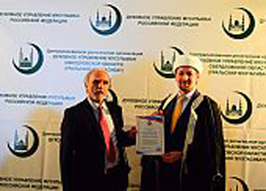 Духовному управлению мусульман (Уральский Мухтасибат) в лице его председателя полномочного представителя муфтия шейха Равиля Гайнутдина в УрФО Артура Мухутдинова общероссийская общественная организация «Федерация мигрантов России» выразила благодарность. Благодарственное письмо вручил руководитель регионального отделения Федерации мигрантов России по Свердловской области Хушват Айдаров.