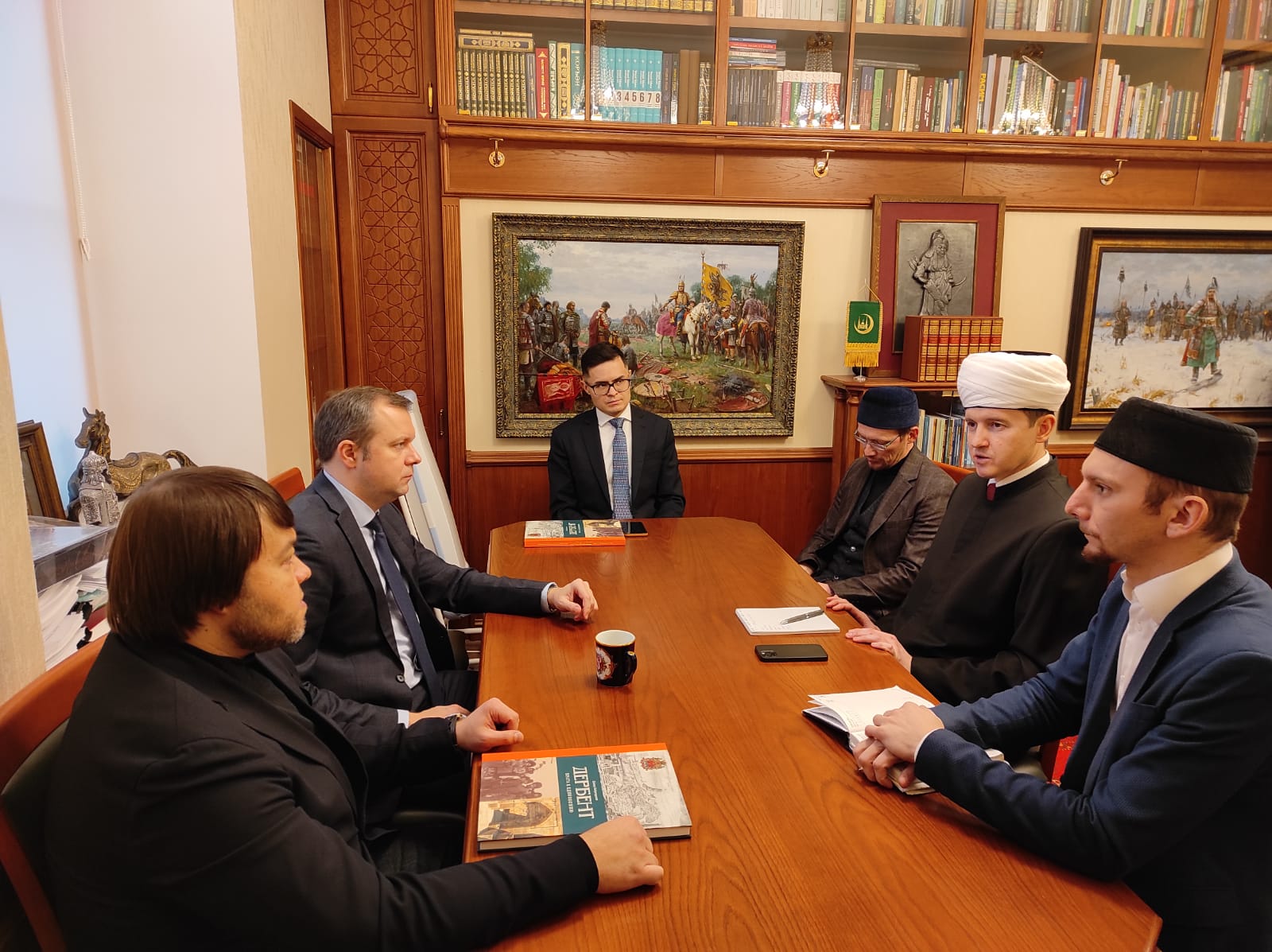 В Духовном управлении мусульман РФ прошла рабочая встреча заместителя председателя ДУМ РФ Ильдара Нуриманова с заместителем полномочного представителя президента в СКФО Александром Куренным, состоявшаяся в продолжение сотрудничества и реализации совместных планов, намеченных в сентябре 2021 г. в ходе встречи председателя Духовного управления мусульман РФ муфтия шейха Равиля Гайнутдина с полномочным представителем президента в СКФО, членом Совета безопасности России Юрием Чайкой.