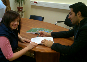 Еще одна проблема в изучении стран СНГ – это отсутствие литературы на русском языке. «После распада Советского Союза все, что выходило в этих странах, выходило на национальных языках, и они мало переводились на русский язык. Я сейчас привезла много книжек из Узбекистана, но они все на узбекском языке», - отмечает Жибек Сыздыкова. На фото снизу: студенты ИСАА с учбеником азербайджанского языка