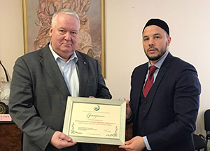 В свою очередь, Анатолий Воронин информировал об основных направлениях деятельности возглавляемого им вуза, в том числе и о том, что обучение здесь проходят студенты-мусульмане из различных регионов России и стран зарубежья. Ректор ПетрГУ выразил готовность продолжить сотрудничество с ДУМ РФ. От имени муфтия Равиля Гайнутдина ему был вручен Сертификат о передаче в дар Петрозаводскому госуниверситету книг и периодических изданий ИД «Медина». Среди переданных в дар изданий – «Ислам: вероучение, поклонение, нравственность, закон» муфтия шейха Равиля Гайнутдина, «История ислама в России» первого заместителя председателя ДУМ РФ, доктора теологии Дамира Мухетдинова, экземпляры журнала «Минарет» и газеты «Минбар ислама» и другие.
