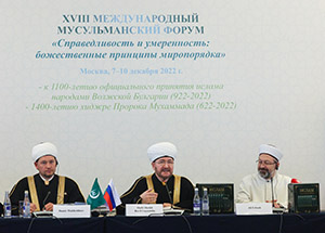 8 декабря на XVIII Международном мусульманском форуме «Справедливость и умеренность: божественные принципы миропорядка» председатель Духовного управления мусульман Российской Федерации муфтий шейх Равиль Гайнутдин и глава Управления по делам религии Турецкой Республики доктор Али Эрбаш провели презентацию семитомного сборника «Ислам через призму хадисов», который увидел свет в Анкаре в 2021 году.