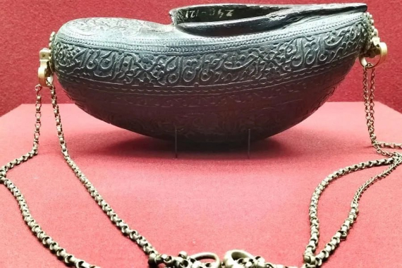 Но есть несколько исключений. Например, надгробный камень XVI века, привезенный из низовьев реки Зеравшан, или изящный сосуд для сбора подаяний «кешкуль», сделанный в XVIII веке в Бухаре.