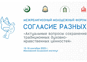 15–16 сентября 2023 года состоится Межрелигиозный молодежный форум «Согласие разных» на тему: «Актуальные вопросы сохранения традиционных духовно-нравственных ценностей в молодежной среде». Организаторами форума выступают Московский исламский институт совместно с Департаментом образования и науки Духовного управления мусульман Российской Федерации при содействии Фонда поддержки исламской культуры, науки и образования и ИД "Медина".