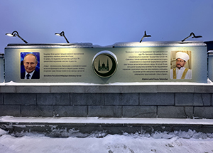 Одна из поверхностей выставки уделена вниманию о разрешении на строительство мечети в Парке «Патриот». Напомним, муфтий шейх Равиль Гайнутдин лично обратился к Президенту РФ Владимиру Путину и выразил благодарность за поддержку инициативы по возведению мечети защитников Отечества в межрелигиозном комплексе парка «Патриот». Духовный лидер мусульман России пригласил Главу российского государства на закладку камня в основание мечети, просил назначить дату после согласования церемонии с Минобороны РФ.