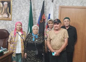 В резиденции Духовного управления мусульман ДНР состоялась встреча руководителя аппарата Фариды Хафизовой и управляющего делами Якуба Аистова с Байрамбикой Хамитовой - прославленной волонтеркой из Челябинской области.