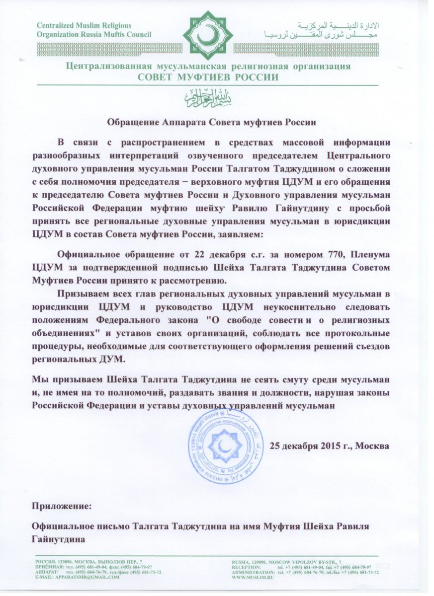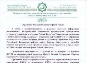 Обращение Аппарата Совета муфтиев России