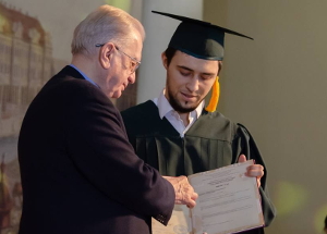 Магистратуру окончили также ряд воспитанников президентской программы подготовки кадров с углубленным знанием истории и культуры ислама, начавшие обучение еще со ступени бакалавриата. Среди них – первый заместитель председателя Духовного управления мусульман Нижегородской области Фянис Салахетдинов, окончивший магистратуру в Нижегородском государственном педагогическом университете имени Козьмы Минина и проповедник Сайидмухаммад Абубакаров, окончивший магистратуру на Восточном факультете Санкт-Петербургского государственного университета и получивший диплом из рук исламоведа с мировым именем академика Михаила Пиотровского.