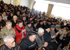 12 марта в микрорайоне Исмаил-бей г. Евпатория прошла встреча крымскотатарской общественности с членами общественного движения «Къырым» и представителями Духовного управления мусульман Крыма и г. Севастополь (ЦРО ДУМК – Муфтият Крыма).В ходе встречи евпаторийцы смогли задать интересующие их вопросы представителям духовенства и республиканских властей. В мероприятии приняли участие заместитель Председателя Государственного Совета Республики Крым Ремзи Ильясов, советник Полномочного представителя Президента Российской Федерации в Крымском федеральном округе Эскендер Билялов, заместитель Муфтия Крыма Эсадуллах Баиров, заместитель главы администрации города Эльмар Мамбетов, председатель комитета городского совета по вопросам жизнеобеспечения, энергетики и жилищно-коммунального хозяйства Борис Назаров, депутат Евпаторийского городского совета Эльдар Ибрагимов. На встрече говорили о решении правовых, социально-экономических и культурно-этнических проблем крымскотатарского народа. Был затронут широкий круг вопросов, среди них: проблемы обустройства крымских татар, приобретение ими гражданства Российской Федерации, получение справок о реабилитации, а также вопросы в религиозной сфере: оформление и строительство мечетей, регистрация общин. Обсудили и актуальные проблемы микрорайонов Исмаил-бей и Спутник-1. Это восстановление освещения, ремонт дорог, работа общественного транспорта. Много обращений было связано с оформлением земельных участков, вводом в эксплуатацию жилых домов. Все вопросы и обращения евпаторийцев были взяты на контроль. По материалам Отдела по связям с общественностью и СМИ администрации г. Евпатории. URL: |