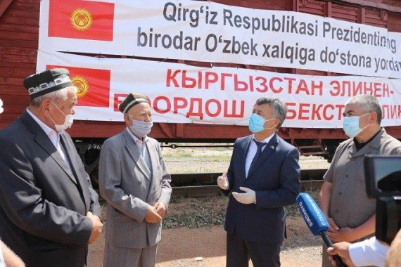 По данным Газета.uz ,поезд с грузом прибыл на железнодорожную станцию «Янги-Янгиер» в сопровождении посла Кыргызстана в Узбекистане Ибрагима Джунусова и представителя кыргызского МЧС. На станции поезд встретила делегация во главе с хокимом области Гофуржоном Мирзаевым. Груз включил в себя 1000 тонн цемента, 100 тонн риса и 10 тонн растительного масла, отмечается в сообщении. Напомним, 1 мая в Сырдарьинской области разрушилась плотина Сардобинского водохранилища,наводнением повреждены несколько населенных пунктов Узбекистане и Казахстане.
