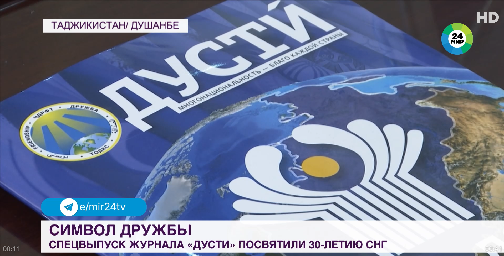 В Душанбе представили новый выпуск журнала «Дусти», посвященный 30-летию СНГ, передает «МИР 24».