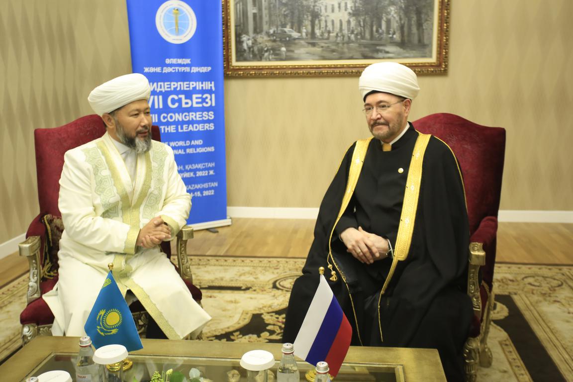 Председатель Духовного управления мусульман Казахстана Наурызбай кажы Таганулы встретился с высоким гостем VII Съезда лидеров мировых и традиционных религий, председателем Духовного управления мусульман России и Совета муфтиев России шейхом Равилем Гайнутдином.