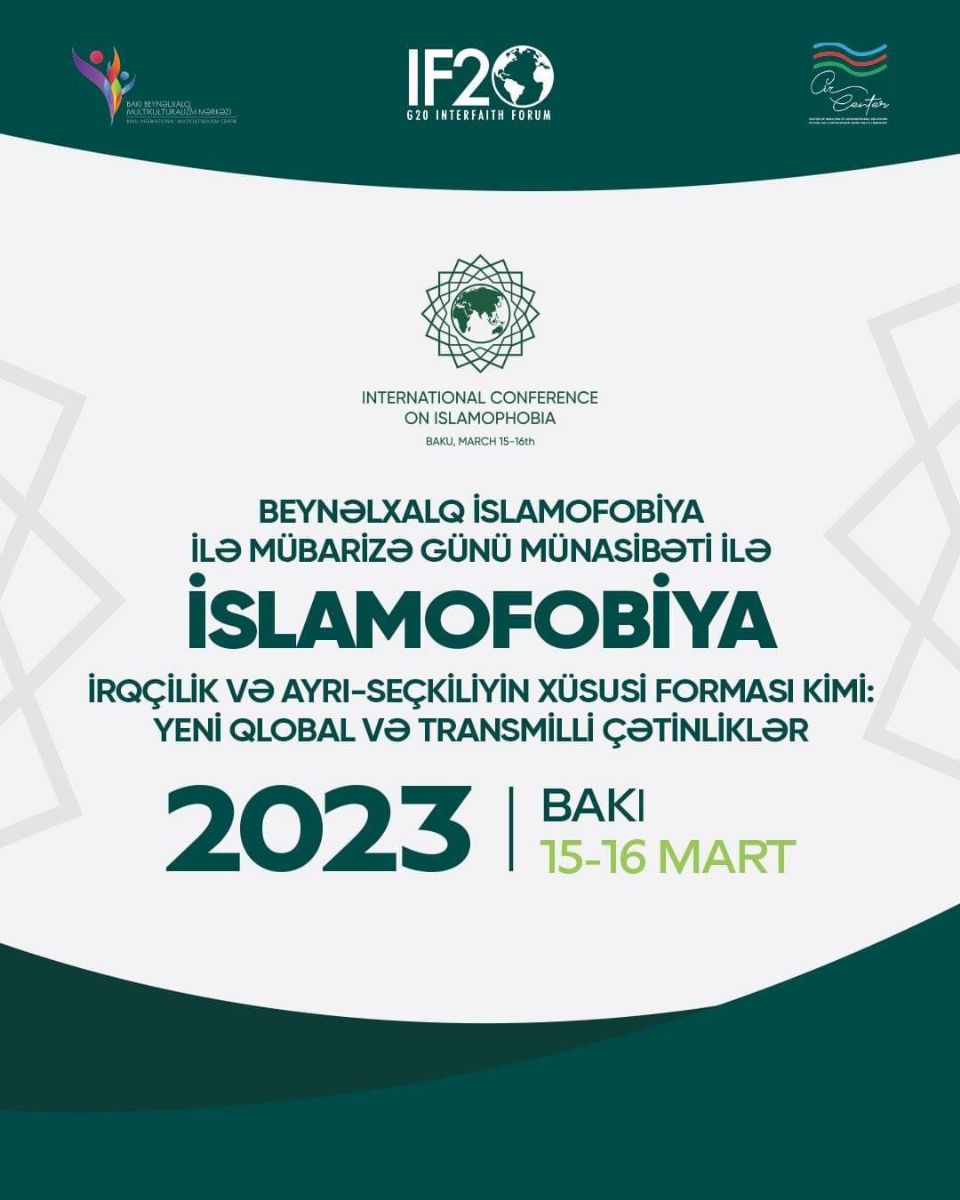Генеральная Ассамблея ООН в 2022 году приняла резолюцию, согласно которой 15 марта отмечается как Международный день борьбы с исламофобией. К годовщине знакового события 15-16 марта Бакинский международный центр мультикультурализма и Центр анализа международных отношений Азербайджана совместно с Межрелигиозным форумом G20 проводят международную конференцию по теме «Исламофобия как особая форма расизма и дискриминации: новые глобальные и транснациональные вызовы».