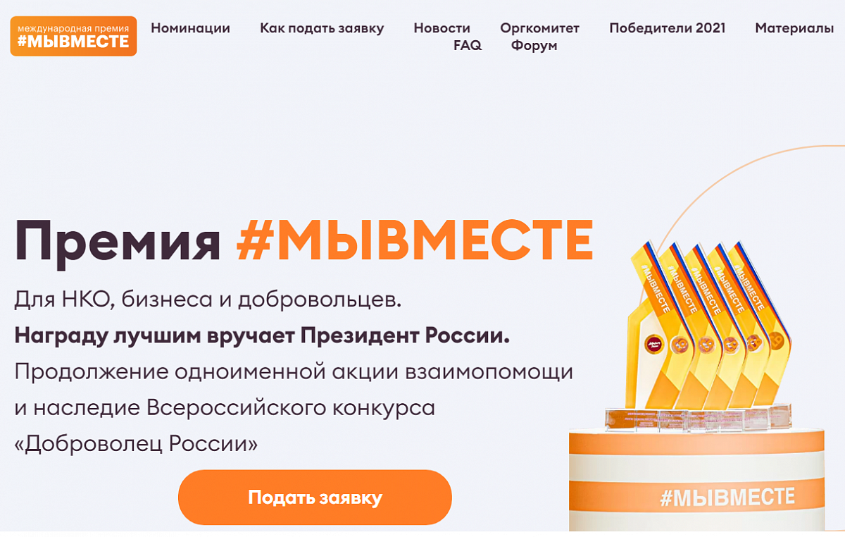 Заявки на российскую международную премию «Мы вместе» в 2023 году подали около 40 тыс. проектов01.08.2023 | Новости