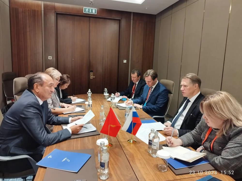 Министр здравоохранения КР Алымкадыр Бейшеналиев провел встречу с министром здравоохранения Российской Федерации Михаилом Мурашко в рамках участия в международной конференции по развитию первичной медико-санитарной помощи. Об этом сообщили в пресс-службе Минздрава КР.
