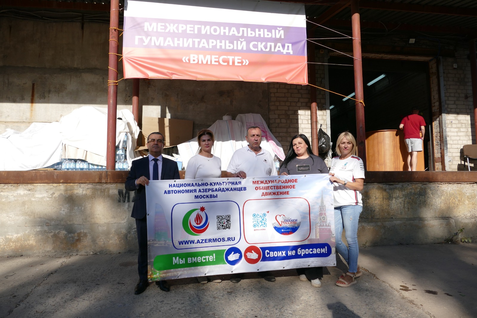 Гуманитарный груз от российских азербайджанцев, состоящий из двух грузовиков, был выгружен в Центре гуманитарной помощи «Вместе» при личном участии Бахтияра Гасанова, председателя Совета НКА азербайджанцев г. Москвы, и Мехрибан Садыговой, Председателя Федерального Совета Федеральной национально-культурной автономии азербайджанцев России и Артура Каримова, депутата городского округа Химки, а второй принял Шумаков Сергей Васильевич, руководитель местного отделения Общероссийского Народного Фронта с волонтерами, с которыми обсудили формирование следующих грузов, следуя девизу «Мы своих не бросаем».